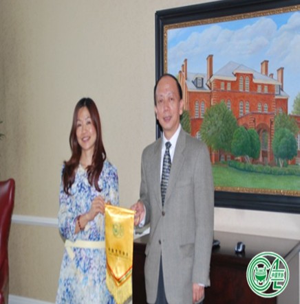 訪問(wèn)團(tuán)一行參觀了北卡羅來(lái)納州州立大學(xué),并與李百煉教授和安娜女士進(jìn)行了親切的交流,李百煉教授向代表團(tuán)伍紫群團(tuán)長(zhǎng)表達(dá)了學(xué)校希望以此為開(kāi)端,與中國(guó)烹飪協(xié)會(huì)建立長(zhǎng)期烹飪技藝交流機(jī)制和相關(guān)的課程設(shè)置的愿望,伍紫群團(tuán)長(zhǎng)向李百煉教授贈(zèng)送了中國(guó)烹飪協(xié)會(huì)會(huì)旗和《舌尖上的中國(guó)》影音資料,并表達(dá)了共同推動(dòng)中華美食海外推廣的美好愿景。