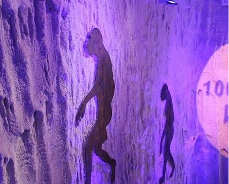 于是老板突發(fā)靈感想出了這個店名,嘿嘿,介個是看湖南衛(wèi)視采訪他家老板親口說滴,立馬就過來探了店面外觀看著猶如洞穴,入口昏暗,趕腳挺神秘滴,墻壁上有許多原始人影像,彷佛搭乘機(jī)器貓的時光穿梭機(jī)來到了原始社會,沿樓梯小心前行,猿人也漸漸站立起來,述說著人類進(jìn)化過程……外圍環(huán)境很有氣勢!
