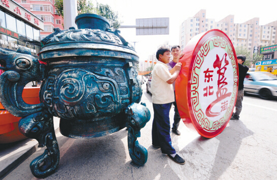據悉,皇姑區正在此處打造一條全長700米的特色美食街——東北簋街,集合100多家餐飲特色店。這兩尊巨“簋”,正是美食街的地標性陳設。