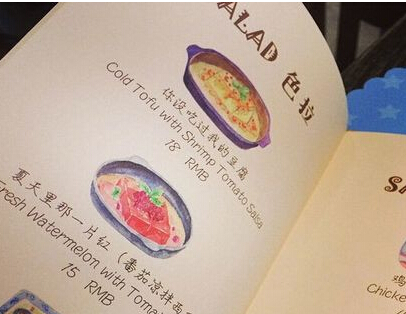 餐廳最大的亮點(diǎn)之一在于菜單,提供各種創(chuàng)意菜式,“紙牌屋肋骨、來自星星的炸雞、你沒吃過我的豆腐…”菜名都非常的寫意,菜名都非常有意思,同時(shí)又緊跟時(shí)下潮流元素,讓人有沖動(dòng)每道菜都點(diǎn)上一遍。