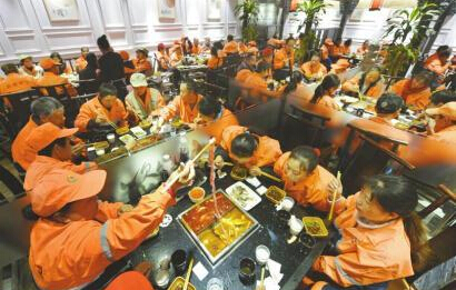 成都一火鍋店請環衛工吃火鍋 網友:作秀也點贊