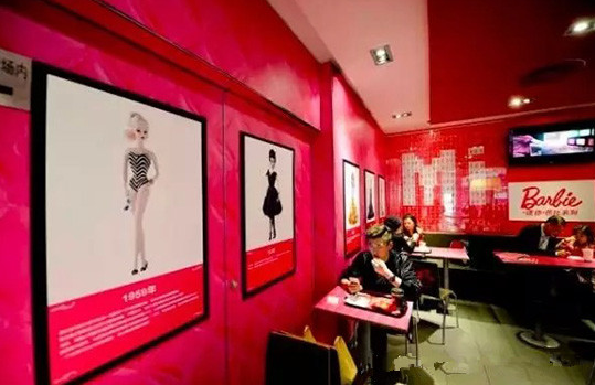 眼下其就在北京、廣州、青島、重慶開(kāi)了多家芭比主題餐廳。店內(nèi)各個(gè)角度都設(shè)有高挑靚麗的芭比人形展板,椅背、墻面也被加上芭比元素,還有放滿整個(gè)櫥窗的迷你芭比娃娃系列,甚至連店員的服裝也是粉色...