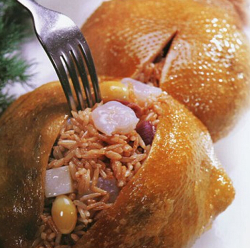 看樣子會(huì)以為這是一只炸雞,金黃的酥皮布滿(mǎn)均勻而細(xì)密的氣泡,然而咬破這層輕薄酥香半透明,絲毫不膩的雞皮之后,濃郁滾燙的雞汁就跟隨松軟入味的雞肉一起噴涌而出,完全酥爛并且包含各種香料氣味的雞肉,一碰就從骨頭上脫離,卻還有雞的滑嫩和鮮美原味。絕不像鹽?雞、白切雞或者北方扒雞,那口感更像是吃了一個(gè)燉雞天婦羅.這只費(fèi)盡心機(jī)的雞叫葫蘆雞,始于唐代,有一個(gè)十分驚悚的故事。