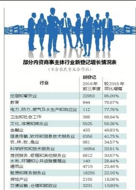 數據顯示,前三季度,全市新登記各類商事主體19萬戶,同比增長22%,新登記商事主體增速為近兩年來最高。截至2016年9月底,全市實有各類商事主體146.7萬戶,高出全國平均增速8個百分點。