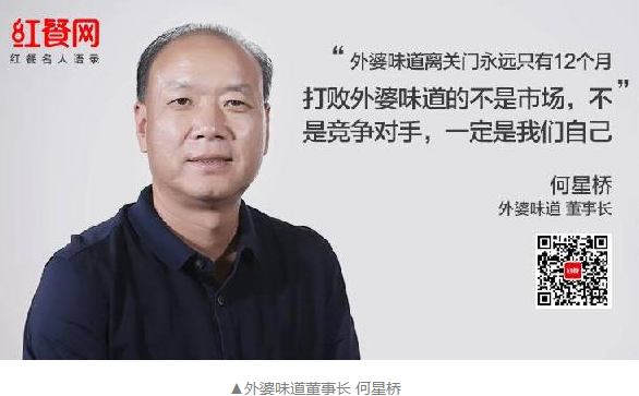 何星橋經(jīng)常對(duì)員工說(shuō)的一句話就是,外婆味道離關(guān)門永遠(yuǎn)只有12個(gè)月。因?yàn)樵谒壑校驍⊥馄盼兜赖牟皇鞘袌?chǎng),不是競(jìng)爭(zhēng)對(duì)手,一定是我們自己。居安思危也就成了他事業(yè)的座右銘。