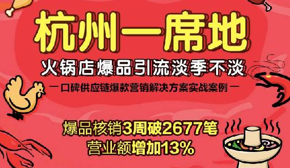 “夏季是火鍋淡季,我們也一直想要開發應季爆品,但又面臨著研發能力有限、供應鏈短板、新品營銷等等難題,并沒有十足的把握。”杭州本地雞窩火鍋 “一席地”的管理人杜帥帥笑言,“沒想到,今年通過與‘口碑貨源市場’合作,火鍋店的業績竟然實現了逆勢增長!”